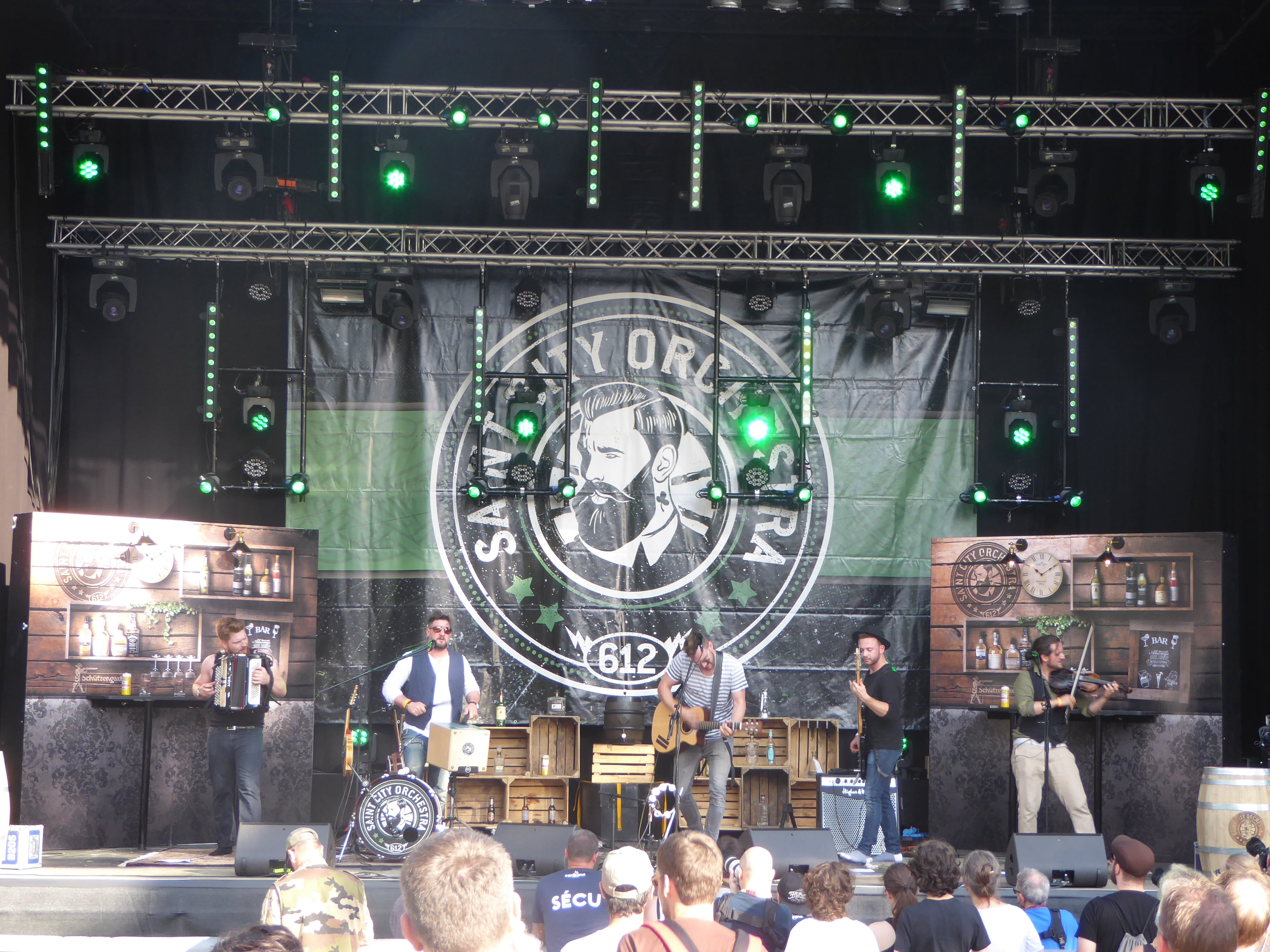 The first band we listened to was Saint City Orchestra. They’re a band from St. Gallen doing Irish Punk music πŸ™‚ I loved their show and we had a great time Irish dancing. I also think they did a great job opening the festival. Not a lot of people were around but they made sure that we had a good time. Creating mosh pits and inviting people on stage to drink beer was so much fun!