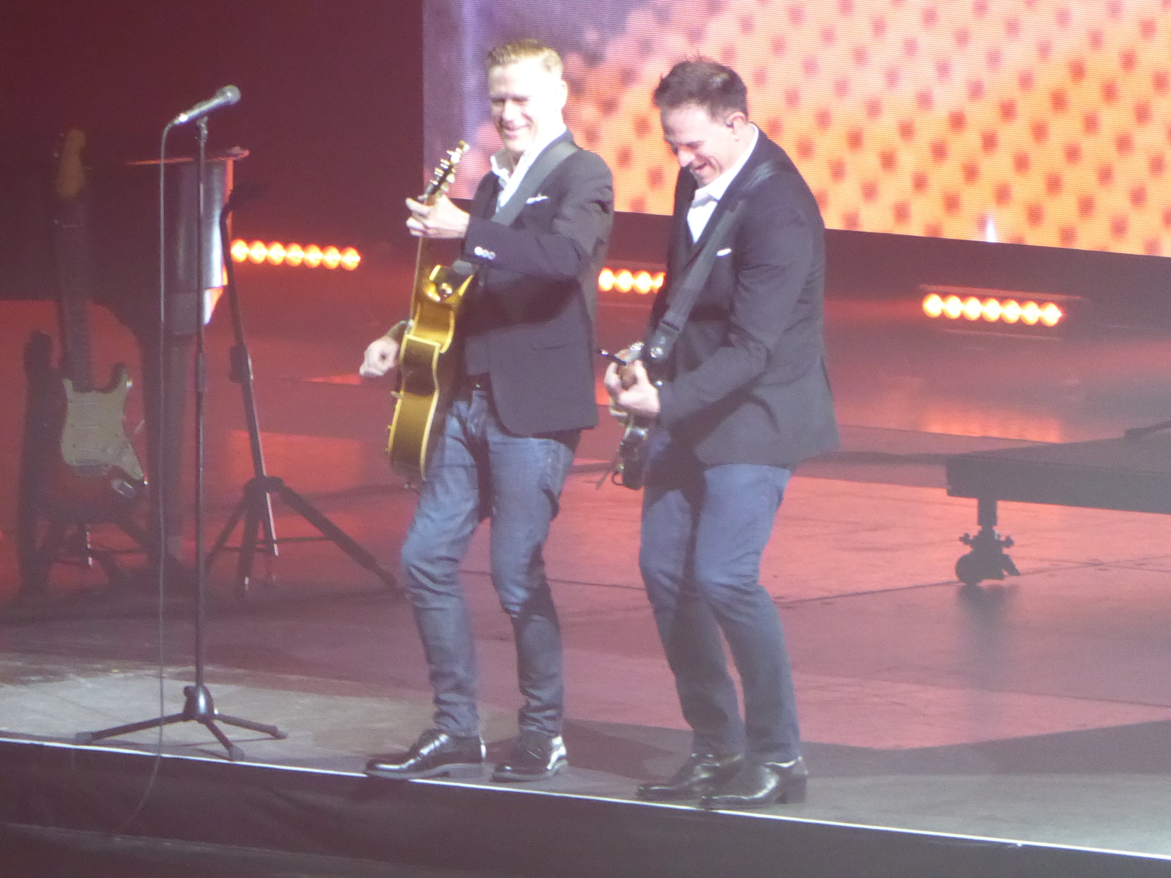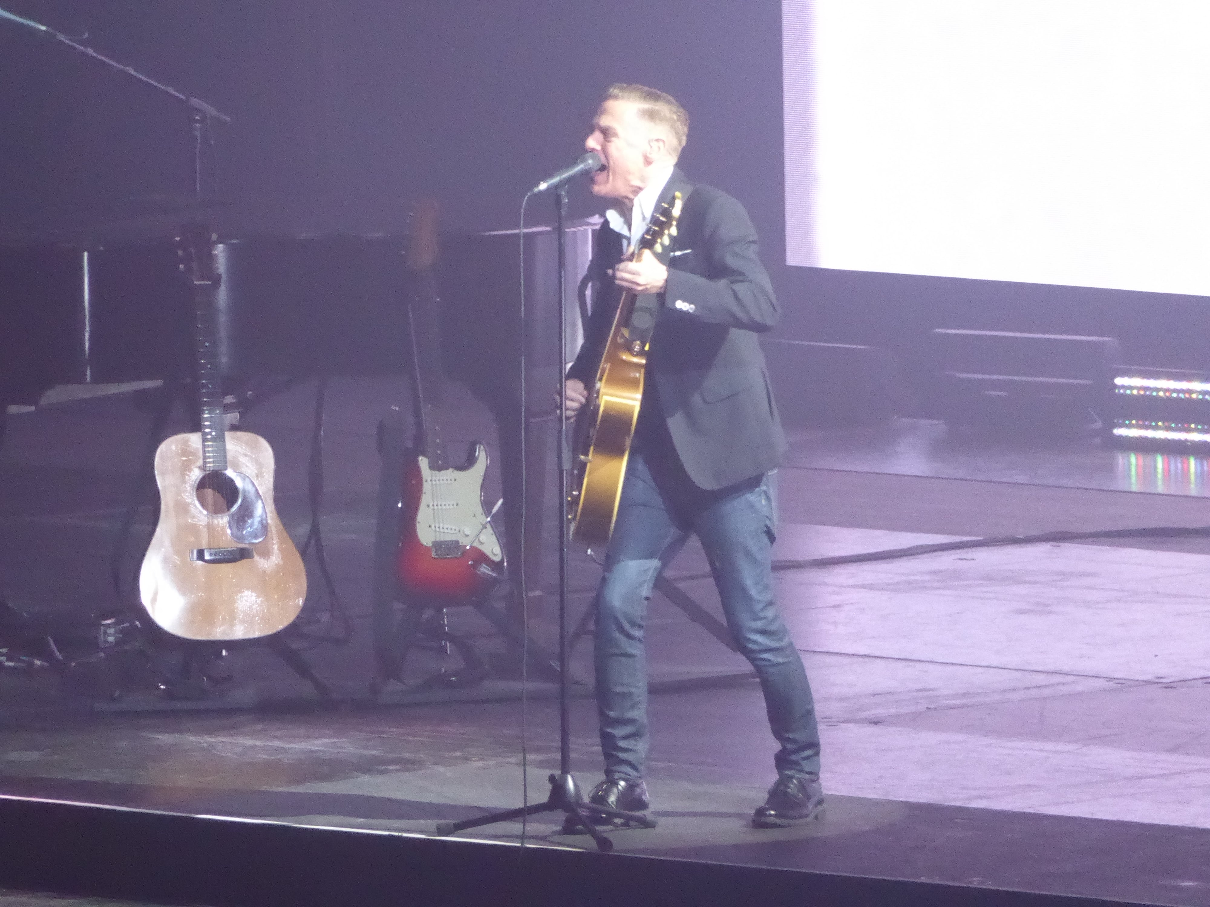 Back to the gig: “I could get used to this” and a cover by the Crickets “I fought the law” finished the main set and Keith Scott and Co. left the stage for the evening but not before they all bowed and did a little dance for us. Time for Bryan Adams and his guitar (and his harmonica) to finish the evening. Even though he is Canadian we enjoyed a very slow acoustic version of a traditional Irish song called “Whiskey in a Jar”. As you all know I have a bit of a thing for Irish music so he definitely hit a nerve 🙂