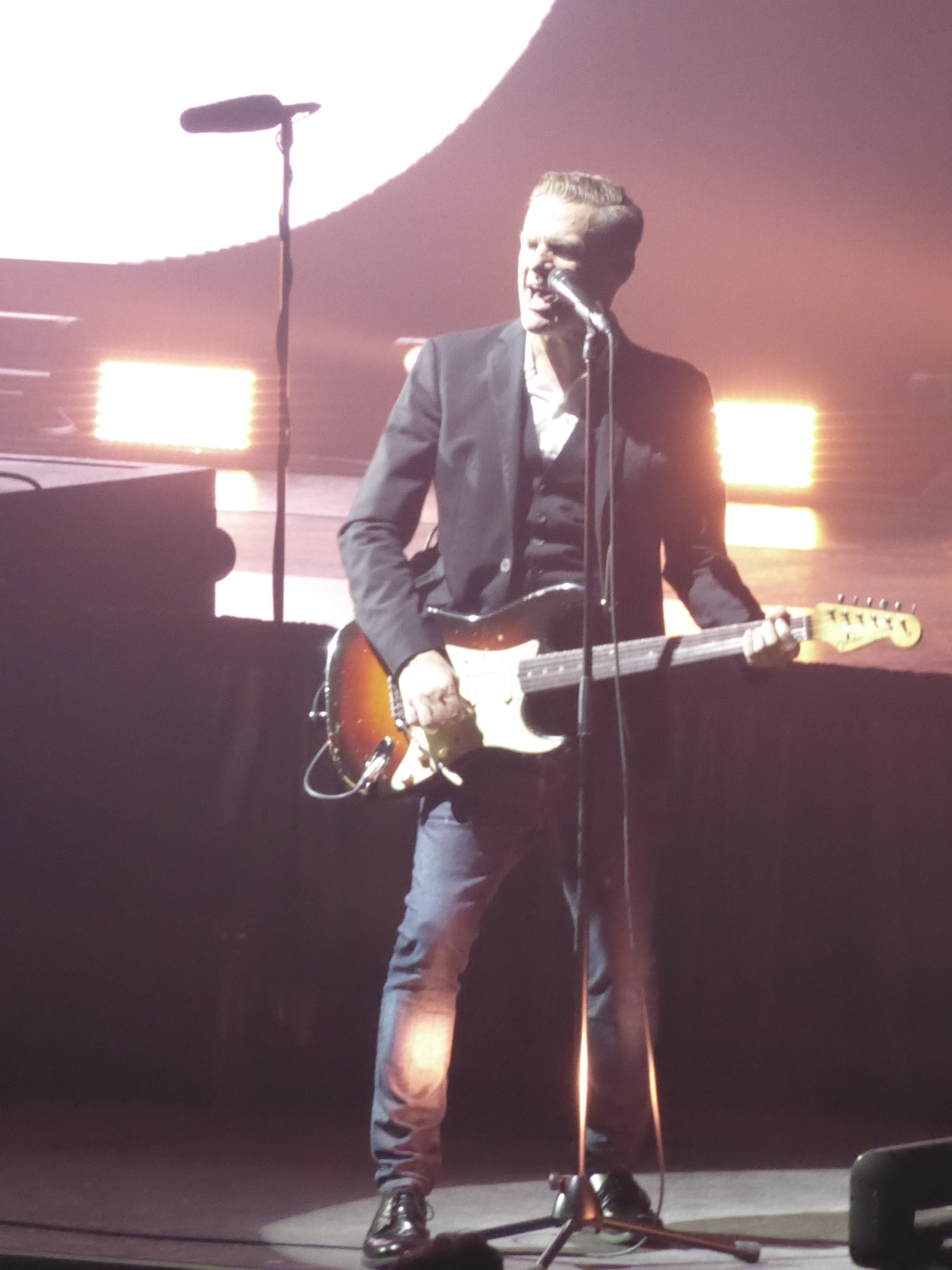 One of the most famous soundtracks (Robin Hood) and awarded with an Academy Award Bryan Adams started to play “(Everything I do) I Do It For You”. What a ballade! And again I was not only fascinated by listening to this song live but also by those hanging lights which were moving up and down. It looked brilliantly! It reminded me a bit of the Red Hot Chili Peppers lights. Huge hits just in the middle of the set and not as you would expect at the end as an encore. I mean how cool is that??!! Without a break – it was just song after song – “Back to you”, “Somebody” and “Have you ever really loved a woman?” with a Spanish touch.