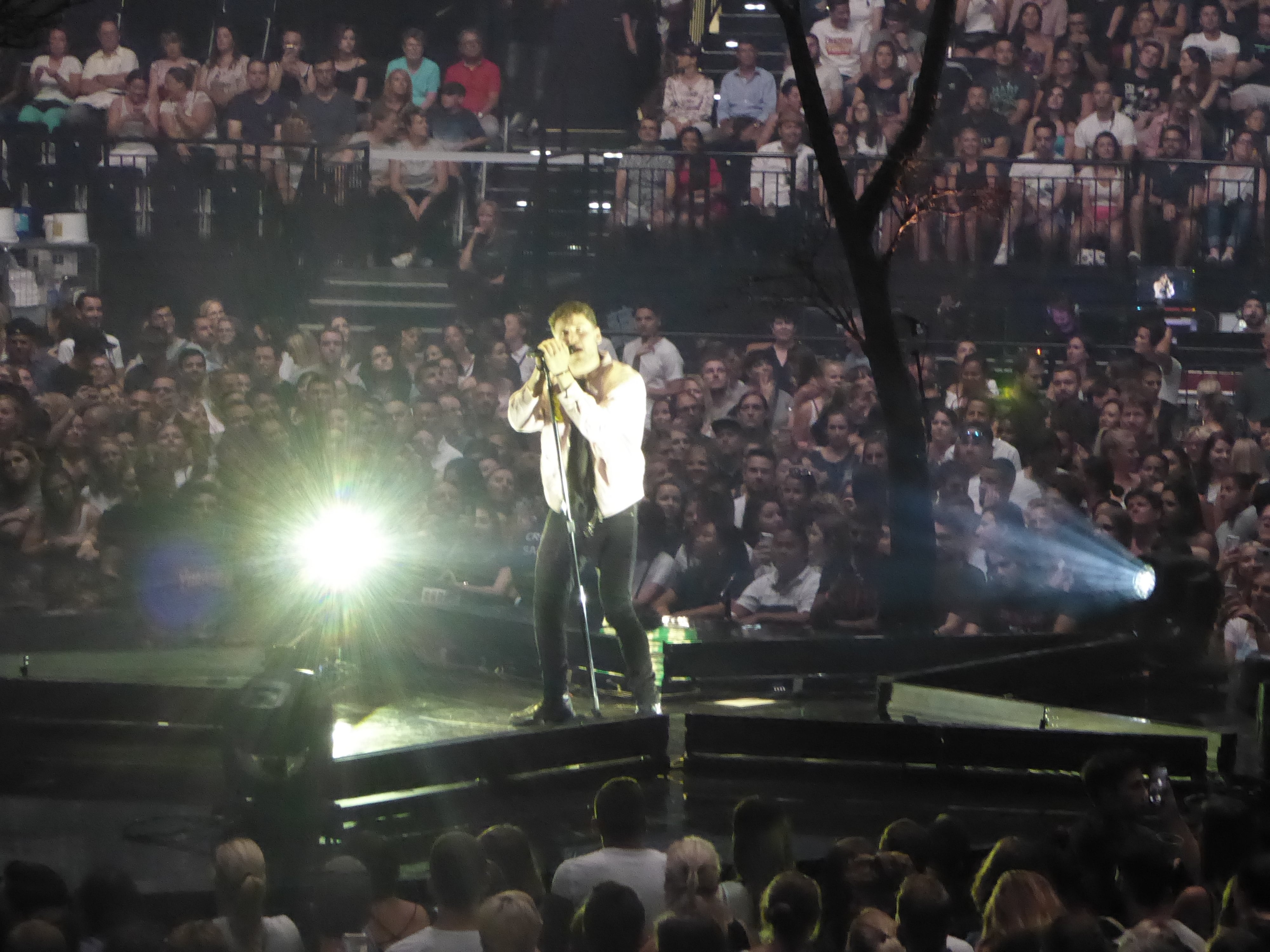 The pad thingy stood on top of the main stage behind the musicians and from there the fog started to roll in. From the rows up top the stage looked like it was shooting lightnings down the front. This show looked different from every angle and you felt like you were part of it. Justin Timberlake started the first beats of “Cry me a River” and the curtain screens turned into falling rain. You didn’t know where to look! This didn’t change when Justin stood on the middle stage with the curtain screen above him showing his reflection about 20 times! And yes, obviously the song was called “Mirrors”. It hit me like a deja vu. This was the last song on the 20/20 experience!! Like in 2014 the whole Hallenstadion was on their feet singing and clapping to the song. It gave me goose-bumps!