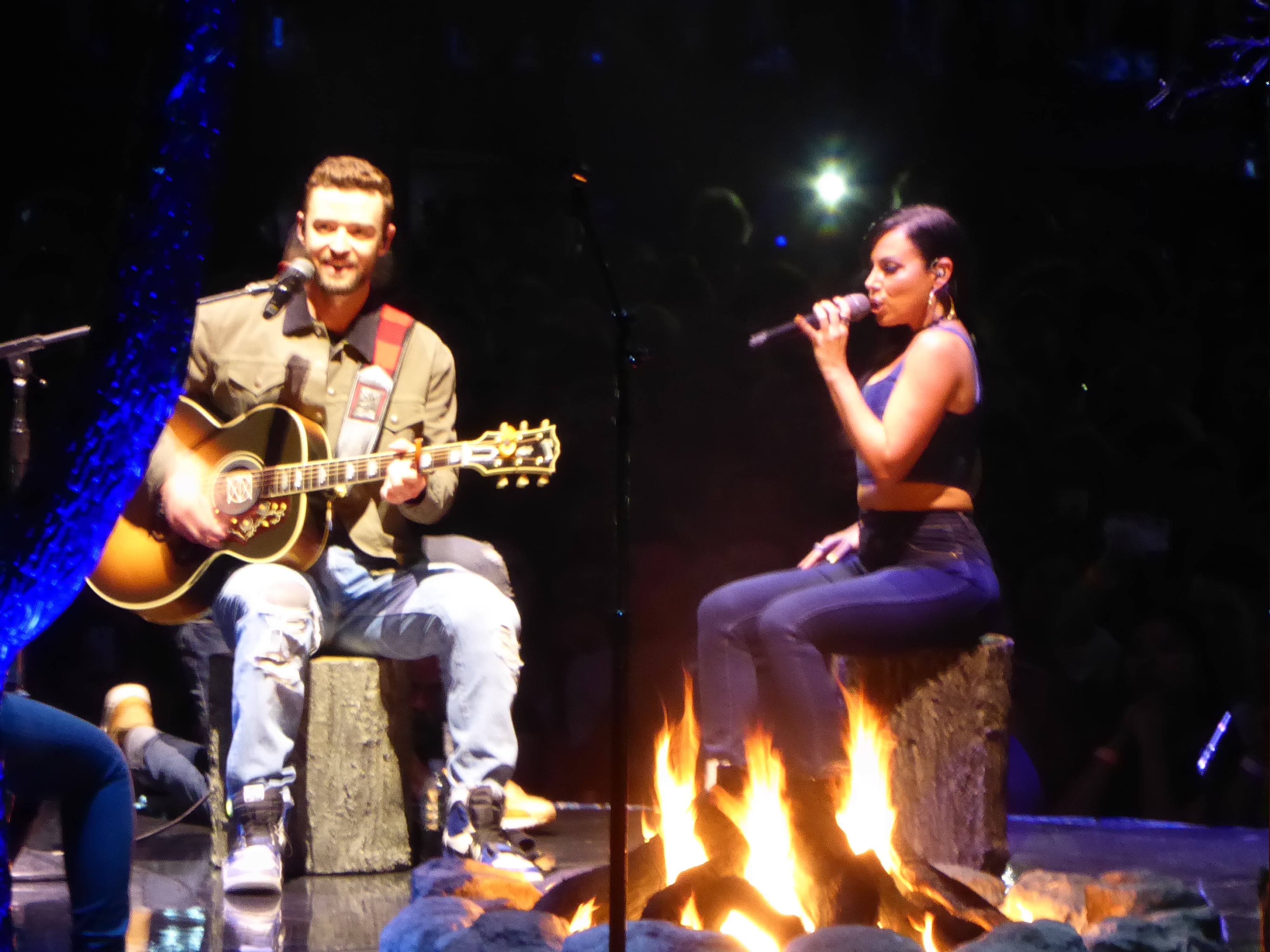 I am sooo glad Justin Timberlake left “Drink You Away” in the set. It was one of my fav moments on the last tour and this time he made everyone lift a glass for the incredible soul diva that Aretha Franklin was – because that’s what you do in the South. Again a nice little tribute to her. Unfortunately not a lot of people know “Drink you Away” but it didn’t keep me from fully enjoying it! After this song it went dark and it looked like a little break because they had to fire up the bonfire! 😀