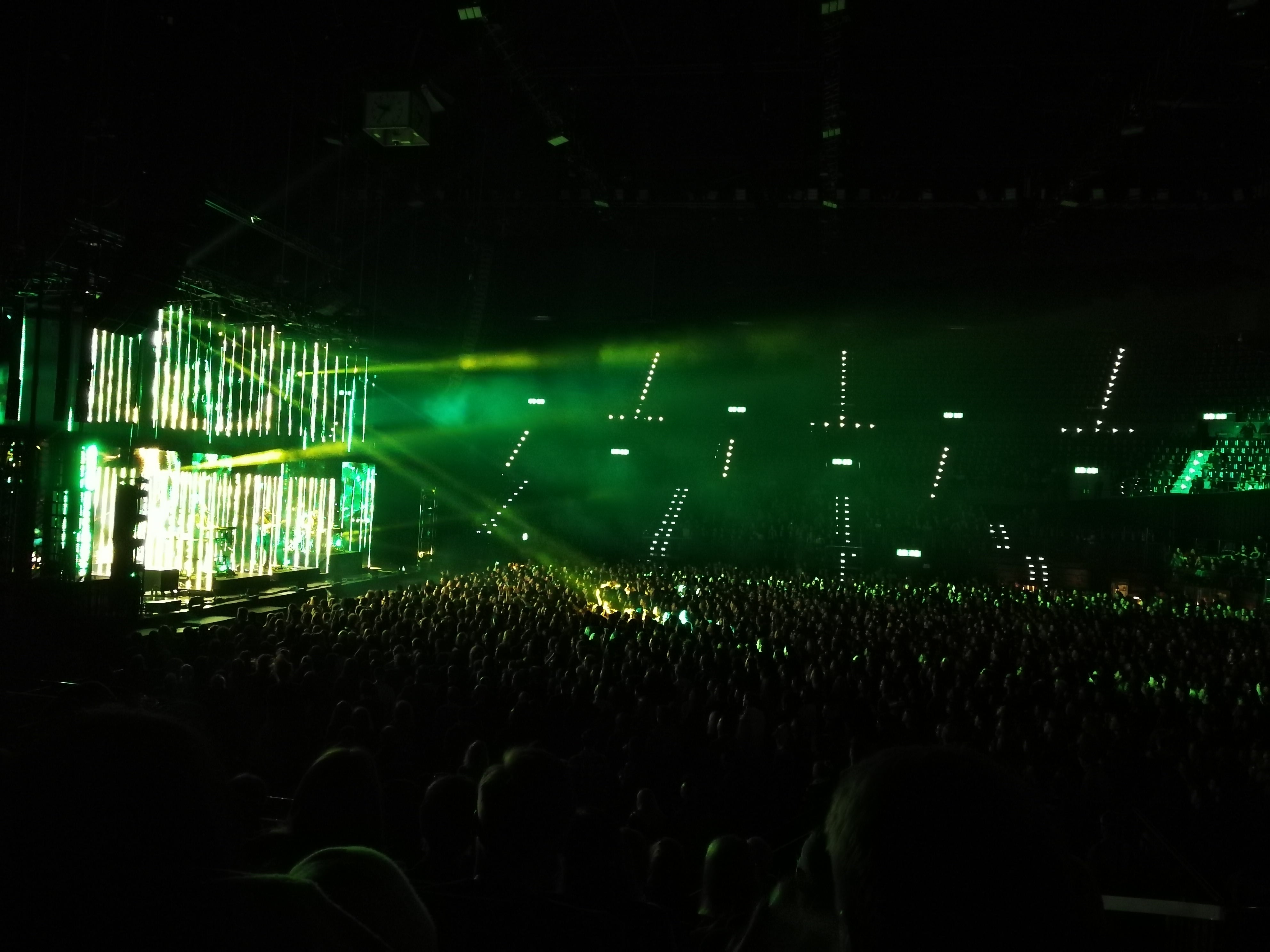 The pad thingy stood on top of the main stage behind the musicians and from there the fog started to roll in. From the rows up top the stage looked like it was shooting lightnings down the front. This show looked different from every angle and you felt like you were part of it. Justin Timberlake started the first beats of “Cry me a River” and the curtain screens turned into falling rain. You didn’t know where to look! This didn’t change when Justin stood on the middle stage with the curtain screen above him showing his reflection about 20 times! And yes, obviously the song was called “Mirrors”. It hit me like a deja vu. This was the last song on the 20/20 experience!! Like in 2014 the whole Hallenstadion was on their feet singing and clapping to the song. It gave me goose-bumps!