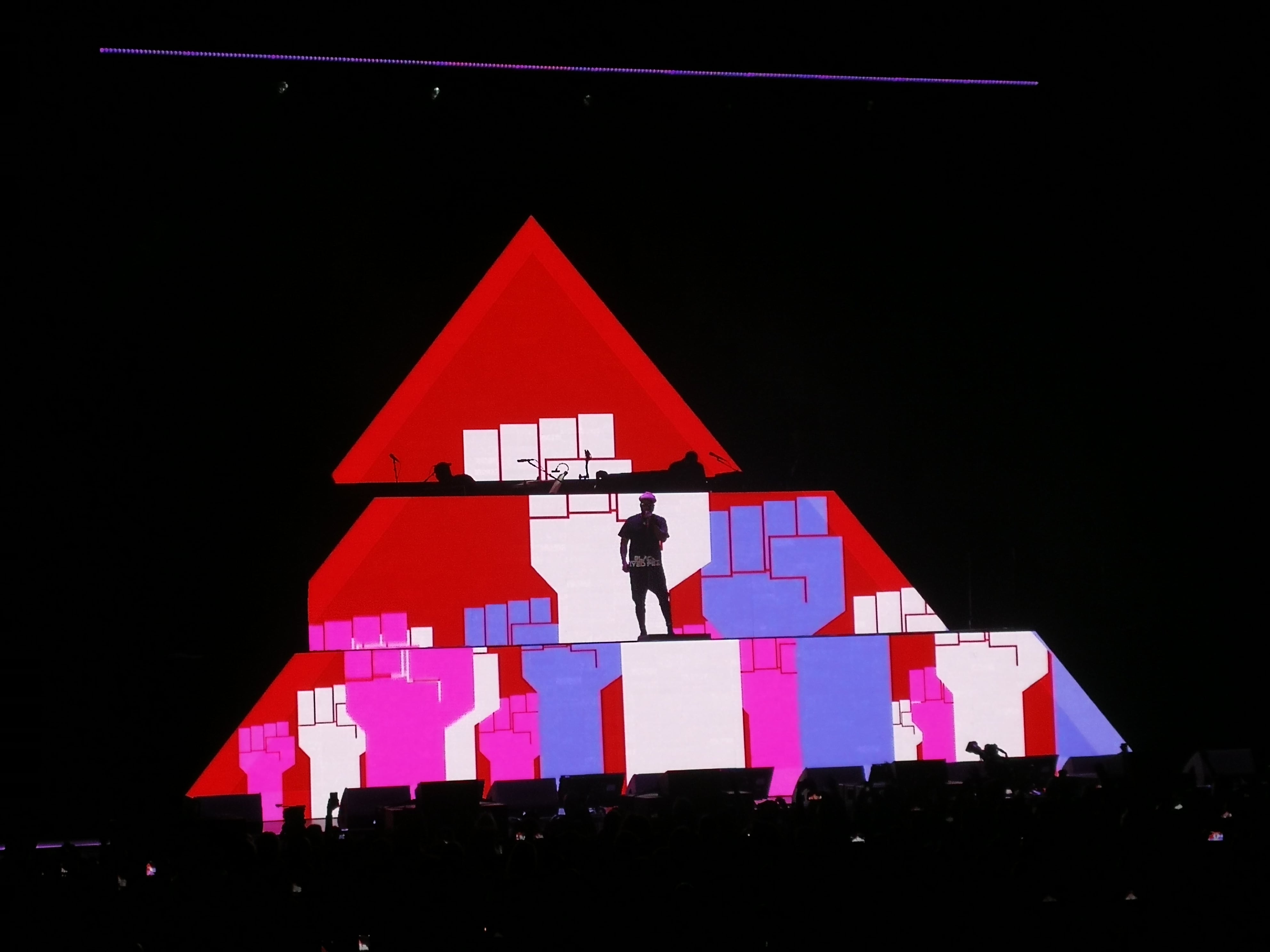 It was clear that with “Don’t Stop the Party” and “The Time (Dirty Bit)” the Black Eyed Peas wanted us to party on. Almost everyone were on their feet rocking out! Their breakthrough hit “Where is the love?” is still very current and I had goosebumps while they performed it. If you think about it, it’s unbelievable. BEP released it in 2003 and 15 years later it still sounds like it’s written just this year. To finish this amazing performance we needed to get our phones out again to enjoy the AR experience π With “I Got A Feeling” a huge pyramid dance floor stage was projected on top of the actual pyramid stage and the lights on the phone added to the lights on stage and it really was an incredible experience. We were jumping up and down with out phones – sooo much fun π