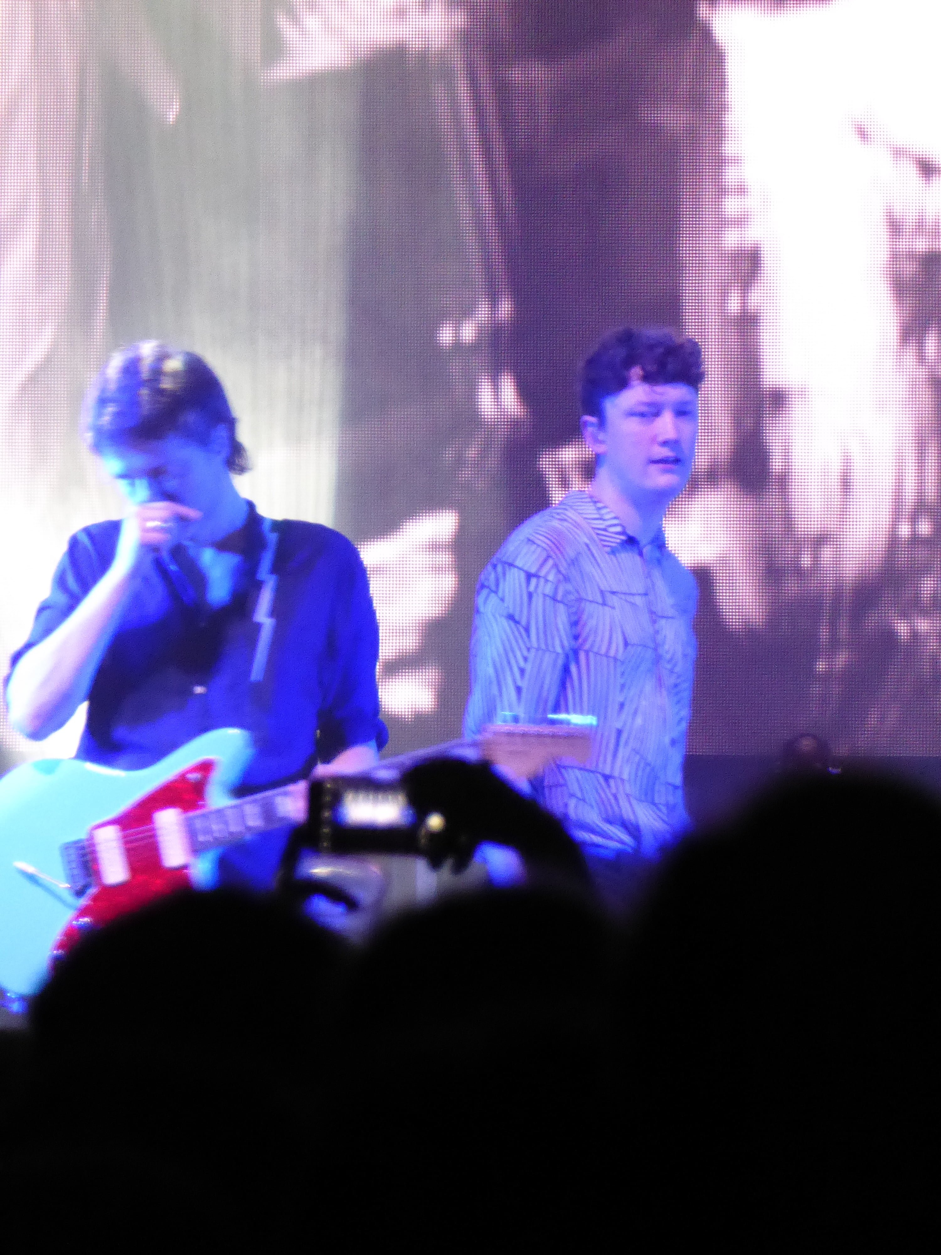 After getting to know them a bit more they performed “Ashes”. Poor Clare who had a little mouth piano got bunny glasses put on while she was playing. Just hilarious! It was time for them to leave the stage again because KT showed us her loop station skills and sang one of her smash hits “Black horse and a cherry tree”. You guys know how much I looove loop stations so I enjoyed this part of the show a lot. The band did too as they were jumping up and down on the sofa in the backstage room which is situated on the right side of the stage and usually covered with a curtain. In what felt like a second the girls ran down and were back on stage for the next song. A song which KT and Nick from Franz Ferdinand wrote after David Bowie died. A nice vanguard song dedicated to a legend: “The Night that Bowie died”.