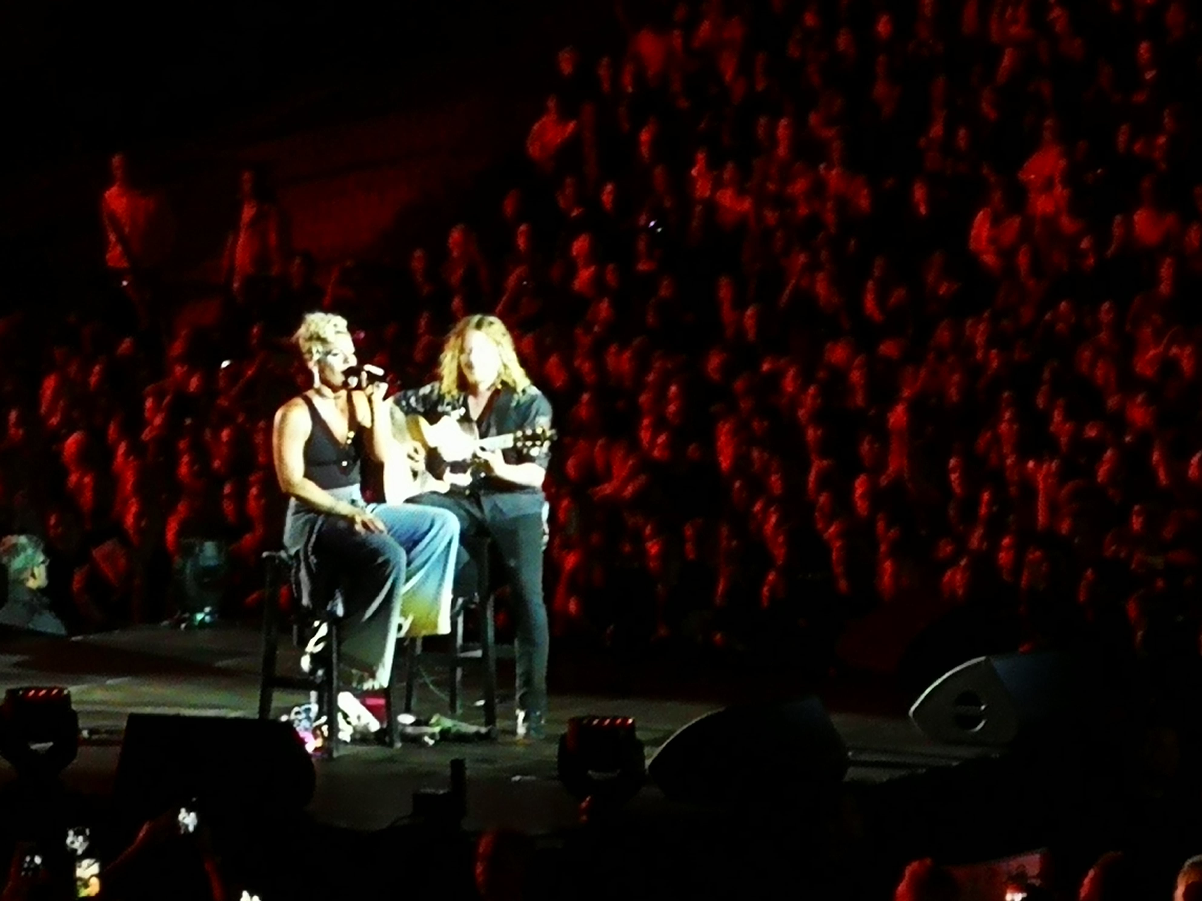 With “Get the party started” she literally got the party started with everyone already out of their seats dancing and singing! With “U & Ur Hand”, “Just like a Pill” and “Trouble” she covered most of the older hits. One of my favourite songs “Trouble” was followed by “Try” and the newer songs “Just give me a Reason” and “How come you’re not here”. P!nk mixed up her song “Funhouse” with No Doubts “Just a Girl” which I loved and she wasn’t sure if people knew it.